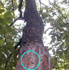 あるところはスズメバチがあごで木を噛み砕いたところです。ここから木の樹液が出てきてここには、夜になるとたくさんの虫が来ます。左のカブトムシのような虫がいっぱい来るので興味のある人は見に行って下さい。