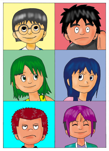 顔を描くのが好きなので、6人分並べてみました。