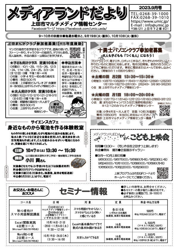 「メディアランドだより」は、毎月上田市内の小中学校に配布している